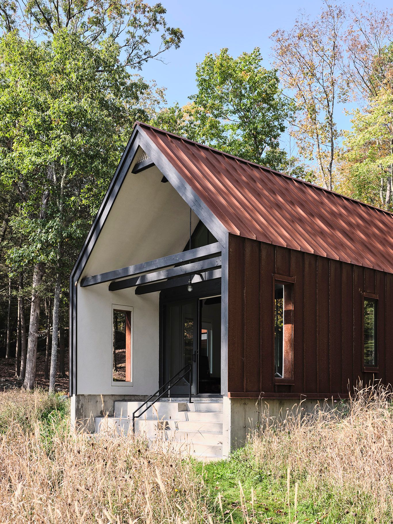 The Pond House is a three bedroom cabin situated on 19 acres with a pond, streams and large stone outcroppings. This project has been featured in New York Times, Dwell, Field Mag, and Upstate House.